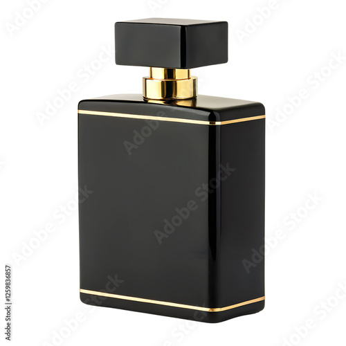 Sleek Matte Black and Gold Perfume Bottle with Minimalist Lines On Transparent Background