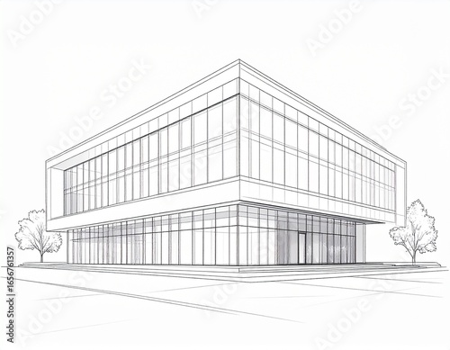 Sleek Modern Building Minimalist Architectural Drawing with Elegant Lines