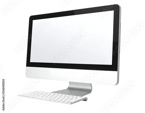 Sleek modern desktop computer with a blank screen and keyboard ready for digital content display