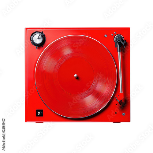 sleek, modern, retro, record, player, isolated, pure, design, technology, audio, music, equipment, entertainment, vinyl, turntable, compact, artistic, vibrant, colours, red, surface, object, creativity, lifestyle, home, decor, vintage, nostalgia, sound, instrumentation, aesthetic, minimalism, circular, fashion, interior
