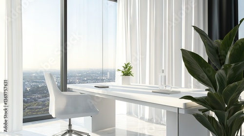 Sleek Office Minimalism: Sunlit Workspace with Design Aesthetics Design