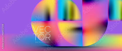 Sleek podium with abstract composition of squares, circles, and triangles, adorned with vibrant fluid gradients for wallpaper, banner, background, landing page, wall art, invitation, print, poster