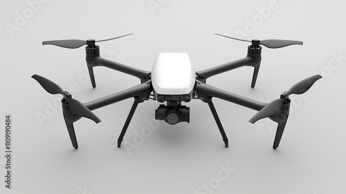 Sleek quadcopter drone with a camera, showcasing modern aerial technology for photography and videography.