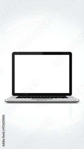 laptop, computer, notebook, technology, digital, screen, blank, white, silver, grey, modern, device, electronic, contraption, portable, cyberspace, computing, workstation, display, keyboard