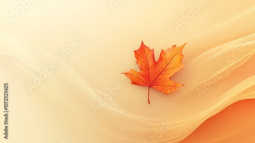 Sleek Thanksgiving vector background with a single autumn leaf and soft gradient shades of orange. Abstract lines enhance the modern aesthetic, making it perfect for promotional banners. Copyspace.