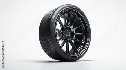 Sleek Wheel of Transportation: An artistic, detail shot of a modern car wheel on an isolated setting.