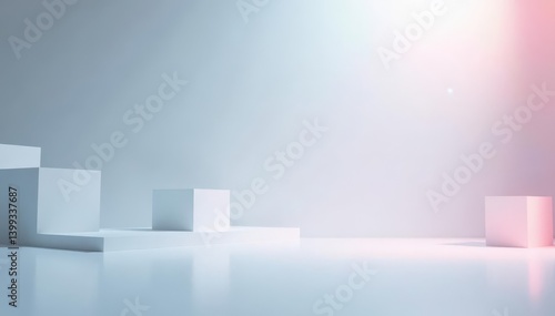 Sleek white backdrop with subtle holographic effect, clean, space, glow