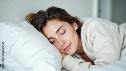 nap, comfort, relax, rest, care, attractive, woman, white, home, pillow, relaxing, comfortable, bed, calm, 1, girl, portrait, bedding, bedtime, sleep, sleeping, peaceful, peace, soft, resting, relaxation, dreaming, health, harmony, woman, napping, bedchamber, cosy, covering, covered, lying, calmness, cosy, embracing