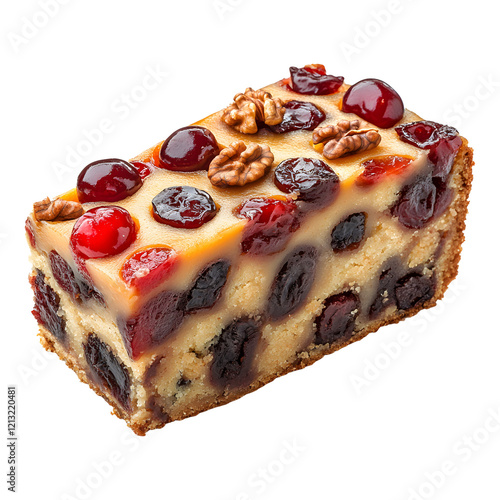 Slice of Fruitcake with Candied Cherries and Walnuts on transparent background