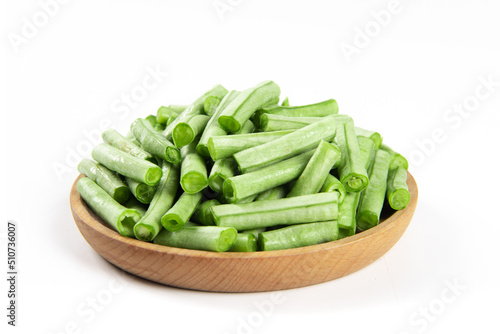 slice of long bean or cowpea in a plate isolated on white background