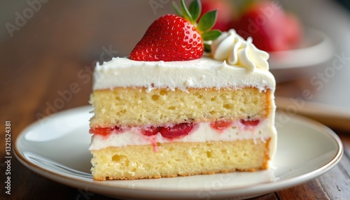 cake, strawberry, ripe, red, dessert, sweet, indulgent, creamy, confection, tasty, delicious, treat, milk, sponge cake, icing, frosting, dairy, fruit, garnish, bakery, homemade, culinary, pastry, vanilla, confectionery, food, epicure, layered, decadent, baked, indulgence, plate, slice, portion, single, background, closeup, photo, sweet, table, birthday, celebration, party, event, occasion, special