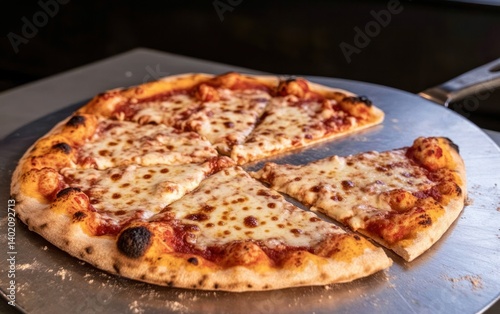 Sliced Cheese Pizza on Metallic Surface