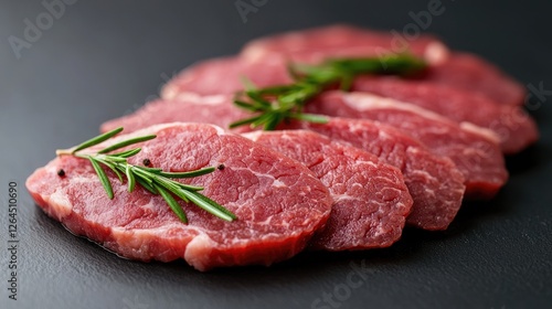 Sliced lamb chops with rosemary, peppercorns. Food photography for recipe books or menus