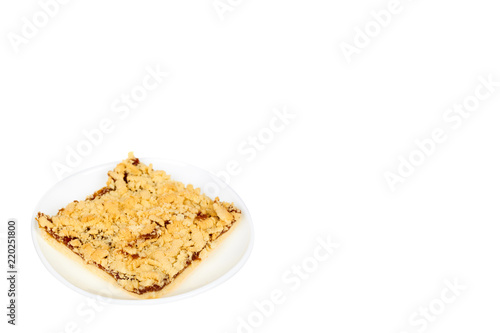pie, food, isolated, dessert, baked, homemade, lattice, fruit, background, calorie, cooked, pastry, white, candy, indulgence, sweet, grated, dough, duff, jam, preserve, confiture, slim, nobody, plate