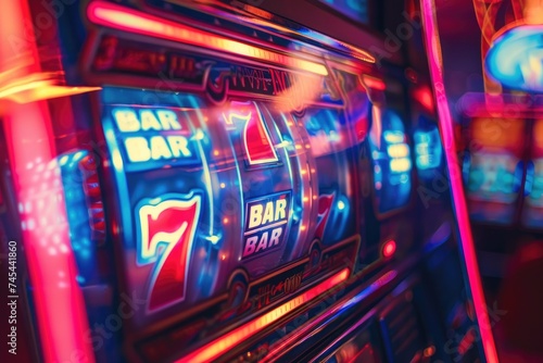 Slot machine in a casino, number's spinning.