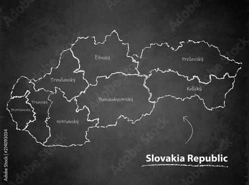Slovakia Republic map separate region individual names blackboard chalkboard vector