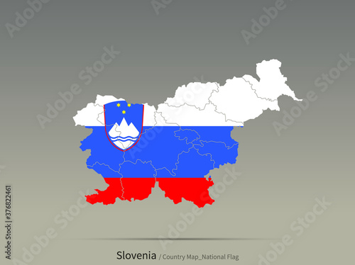 Slovenia flag and map. European countries flag isolated on map.