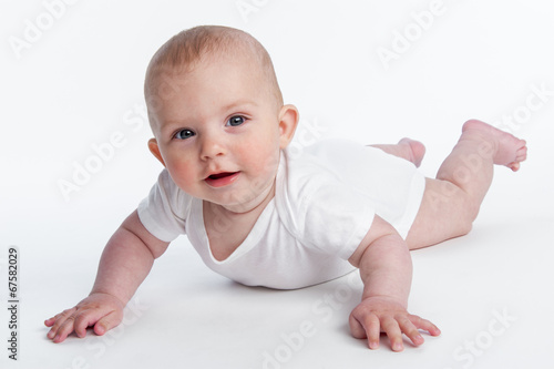 adorable, baby, beautiful, blanket, born, boy, children, childhood, crawling, cute, funny, happy, happy baby, infant, innocence, isolated, laying, little, lying, newborn, play, precious, smile, son, studio shot, sweet, toddler, tot, white background