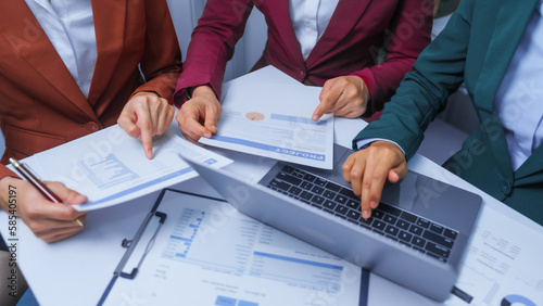 small business accounting team meeting three asian people with salary monthly charts data, basic business accounting and bookkeeping concept.