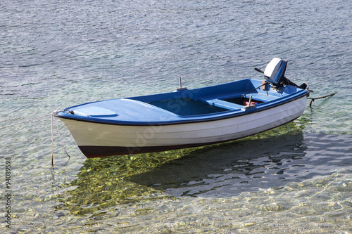 alone, anchored, bay, blue, boat, calm, clean, closeup, day, dock, empty, fishing, floating, greece, lake, lonely, marin, mediterranean, nature, nautical, ocean, old, pier, row, dinghy, rowing, sea, single, small, solitude, summer, tranquil, transport, transportation, travel, vessel, water, wooden