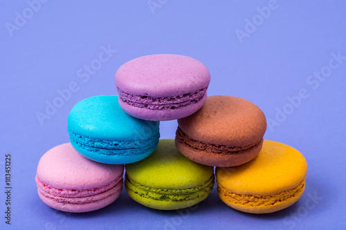 Small French macaroons on pastel background