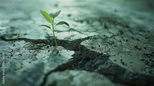Small Green Seedling Growing Through Crack In Dry Ground Representing Hope Strength Resilience Renewal Perseverance And Power Of Nature