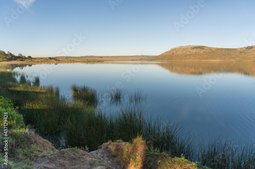 Small lagoon at the foot of the mountain ranges in the countryside of Argentina