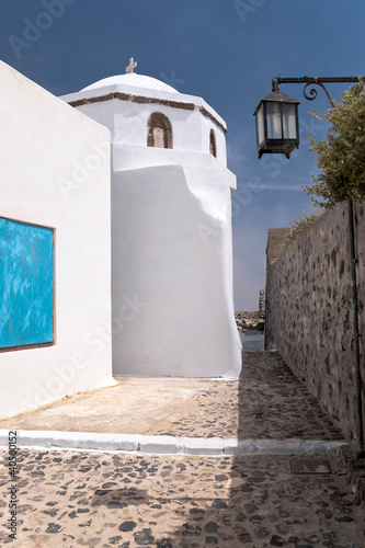 santorini, island, blue, architecture, colours, building, white, sky, day, sunny, cyclade, greece, culture, open air, spring, pavement, traditional, bleached, whitewashed, cross, cupola, window, wall, christian, step, lantern, lamp, village