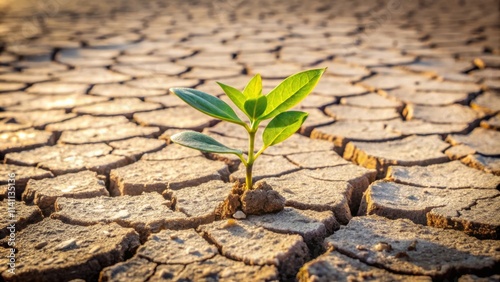 Small plant struggling to survive on dry, cracked soil , drought, plant, survival, struggle, dry, cracked, earth, nature