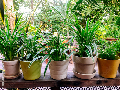 Small potted plants on a shelf