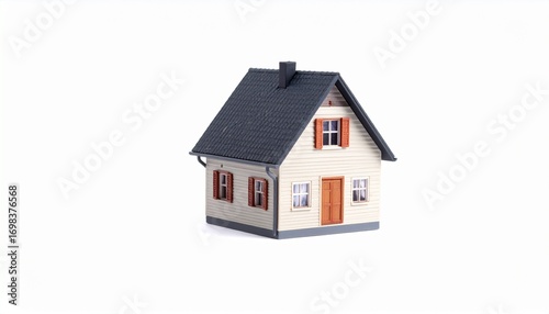 Small Scale Model House Gray Roof, Beige Walls, Windows, Door