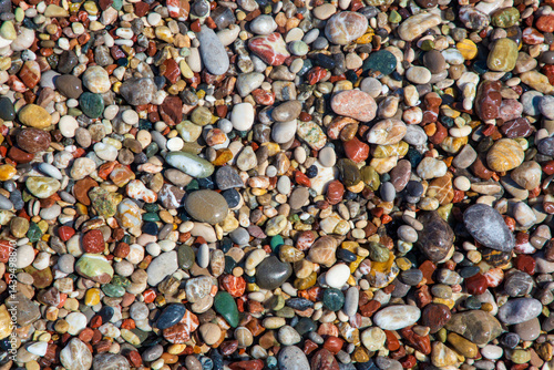 Small sea stones, gravel. Background. Textures. Pebbles on the beach