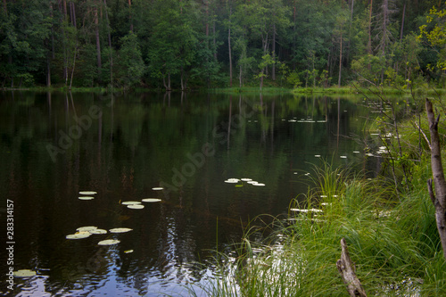 Small stream among pines. Karelia, Russia
