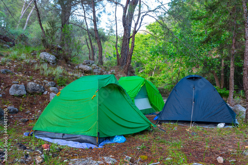 travel, hike, expedition, tour tourism, journey, adventure, sport, tent, racked, camp, equipment, refuge, shelter, forest, wood, park, grove, timberland, wood, tree, glade, grass, landscape, scene, panoramic, scenic, scenery, nature, environment
