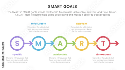 infographic, infographic, slide, presentation, template, text, list, point, point, layout, information, flat, graphic, step, stage, stage, icon, diagram, colourful, description, smart, guide, goal, target, help, 5, 5, specific, measurable, salient, time, bound, business, model, framework, vector, track, tracking, progress, goal, setting, circle, arrow, arrow, right, direction, small