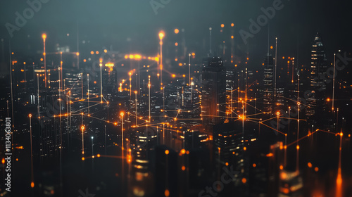Smart digital Innovation city with connection network reciprocity over the cityscape. of future smart wireless digital city and social media networking systems that connects people with in city