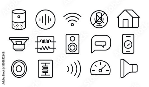 smart, home, device, technology, linear, outline, vector, icon, set, automation, communication, network, wi-fi, speaker, security, control, house, system, innovation, wireless, modern, connectivity