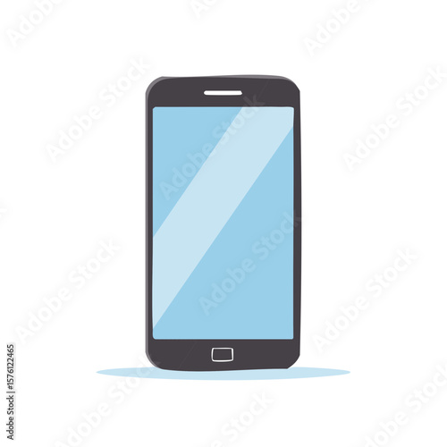 Smartphone Flat Design Illustration, Mobile Phone with Blue Screen, Digital Device Mockup
