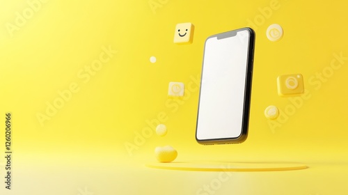 phone, mobile, app, icon, smartphone, technology, digital, communication, social, media, network, cyberspace, online, design, interface, buttons, symbol, graphic, illustration, three-dimensional, rendering, yellow, background, template, screen, blank, empty, display, modern, contraption, device, wireless, connection, datum, information, notification, message, playful, cheerful, fun, happy, smile, camera, user, innovation, futuristic, abstract