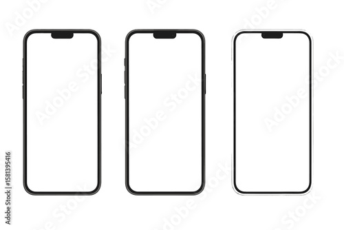 Smartphone mockup with blank white screen, detailed 3D mobile phone mockup, black, gray, and white smartphone models, front view, UI UX design, transparent PNG
