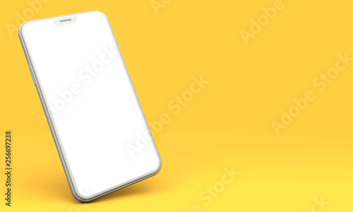 Smartphone mockup with blank white screen on a yellow background. 3D Render