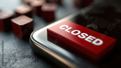 smartphone screen displays CLOSED sign, symbolizing halted digital logistics