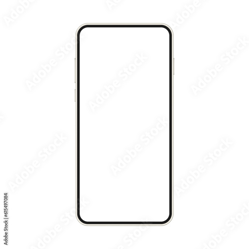Smartphone vector mockup. White mobile phone template with blank screen. Cell phone device isolated on white background.