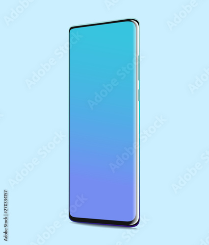 smartphone with blank screen. Fullscreen realistic on blue background