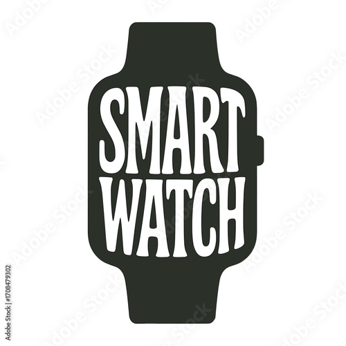 Smartwatch silhouette design with bold text in black color