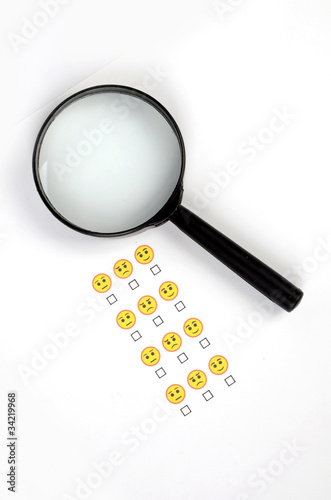 cartoon, character, cheerful, children, concept, emoticon, emotion, enjoyment, expression, face, feeling, icon, mood, signs, smile, symbol, yellow, state, temper, box, check, checkbox, checkmark, choice, choose, design, good, mark, ok, ok, yes, glasses, magnifier, magnifying glass, zoom, research, search, handle, black