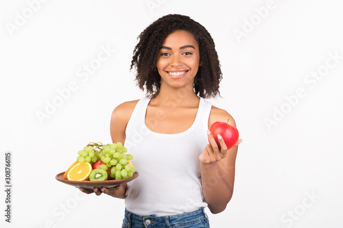 grocery, supermarket, nutrient, red, fruit, client, market, honed, apple, eat, fresh, health, consumer, holding, buying, diet, breakfast, portrait, happy, natural, background, african american, girl, lifestyle, female, isolated, beauty, lunch, nourishment, organic, choosing, woman, person, white, hair, smile, studio, people, curly, healthy, shop, dental, teeth, snack, food, fruit, care, clean, vitamin
