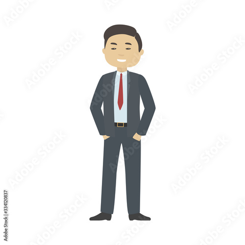 asian, employee, manager, businessman, man, boss, clerk, office worker, staff, white-collar, chief, chinese, japanese, korean, office, smiling, joyful, suit, happy, young, cartoon, illustration, vector, business