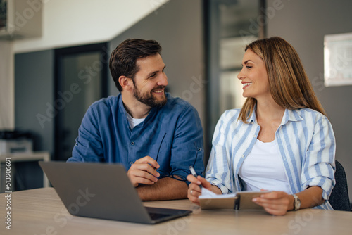 businessman, businesswoman, business, colleague, laptop, partner, working, work, closeup, notebook, online, smile, man, woman