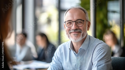 Smiling businessman in a modern office environment